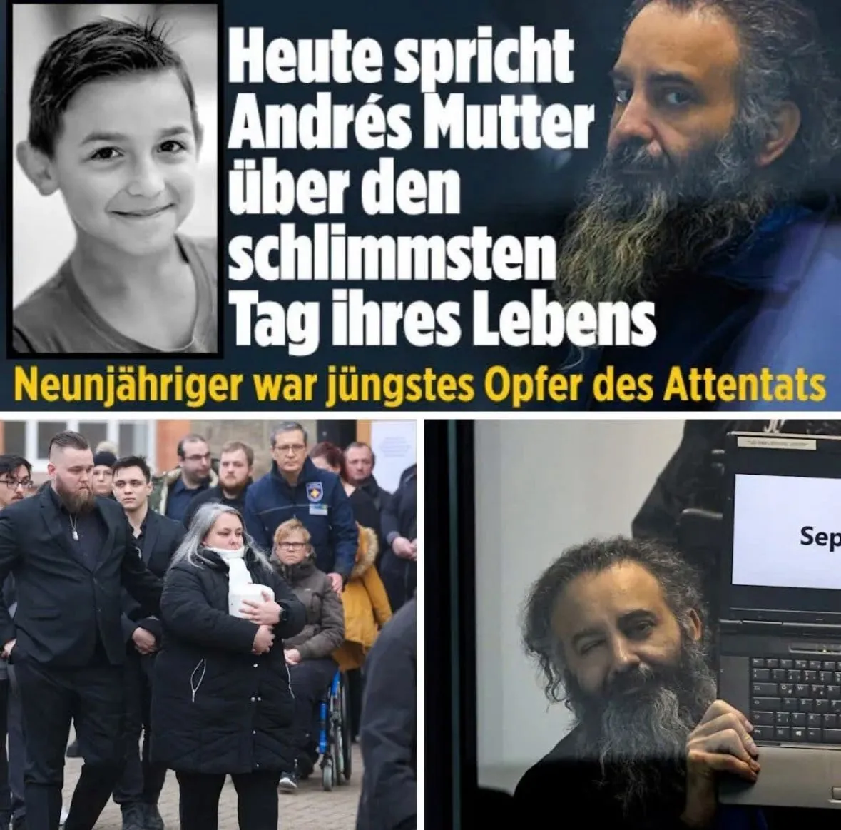 Im Januar wurde André beigesetzt. Seine Mutter trug die Urne ihres Sohnes in ihren Armen, als wolle sie ihn vor der Welt beschützen. Ihr Lebensgefährte stand ihr bei, doch niemand konnte den Schmerz lindern. Auch Marko G., Andrés Vater, nahm als Nebenkläger am Prozess teil und wird auch während der Aussage seiner früheren Partnerin anwesend sein.