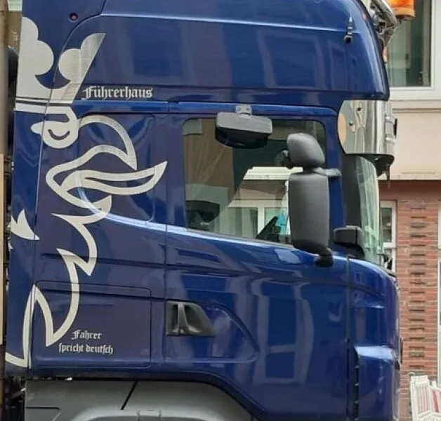 Skandal um LKW-Aufschrift: harmloser Scherz oder gefährliche NS-Verherrlichung? Ein Foto eines LKW sorgt derzeit für heftige Diskussionen. Auf der Fahrerkabine prangt in altdeutscher Frakturschrift der Spruch...