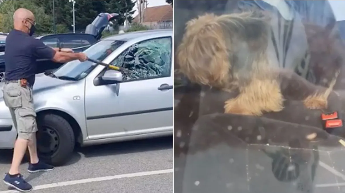 Der Mann zögerte nicht. Nach eigener Aussage sei ihm sofort bewusst gewesen, dass jede Minute zählte. Während manche Passanten unsicher stehen blieben oder diskutierten, ob man eingreifen dürfe, entschied er sich zu handeln. Er versuchte zunächst, den Fahrzeughalter ausfindig zu machen, rief laut, blickte sich um – doch niemand meldete sich. Die Situation eskalierte schnell: Der Hund hechelte stark, wirkte apathisch, sein Kopf hing nach unten.
