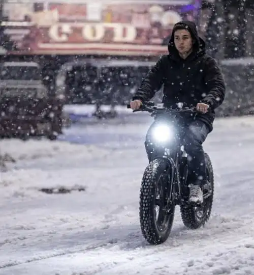 Licht des Fatbikes fuhr er selbstbewusst durch die verschneite