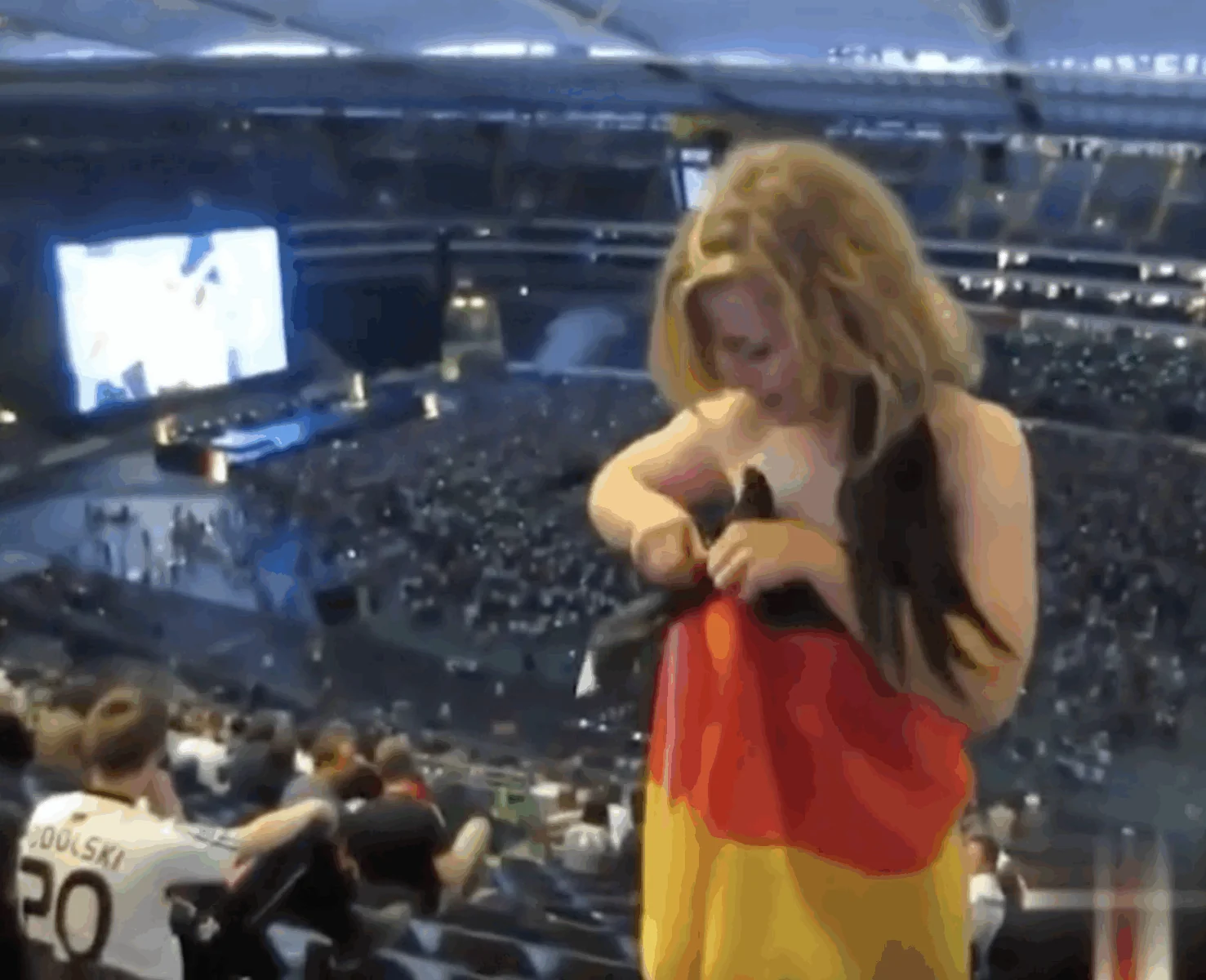 Ein Konzert ist immer mehr als nur Musik. Es ist ein Ort, an dem Emotionen, Kreativität und Gemeinschaft zusammenkommen. Menschen singen, tanzen, lachen – und zeigen sich so, wie sie wirklich sind. Die Frau mit der Flagge ging noch einen Schritt weiter: Sie machte aus der Bühne des Konzerts ihre eigene kleine Show, indem sie den Stoff elegant schwenkte und ihn später wieder fest umlegte – voller Selbstbewusstsein und Freude.